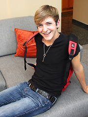 Young, smooth twink Sergei joins us on the couch for a jerk-off session