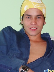Hot brunette boy shows uncut cock
