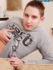 Fresh-faced twink boy demonstrates uncut dick