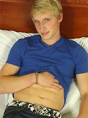 Blond twink strokes dick