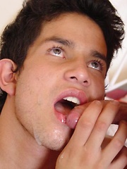 Gorgeous Matt Steele eating his own cum after masturbating.