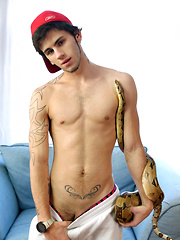 Gorgeous tattooed twink David Sky shows off his hard cock.